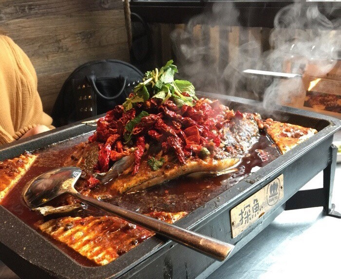 Top1、探鱼 地址位于锦江区锦官驿街1号水锦界4栋1号。 走与传统烤鱼店截然不同的路,强烈的怀旧风,浓郁的文艺范。 灯光是迷离的,菜单是卡通的,壁画是涂鸦的,陈设是怀旧的,甚至连餐具都萌萌哒。